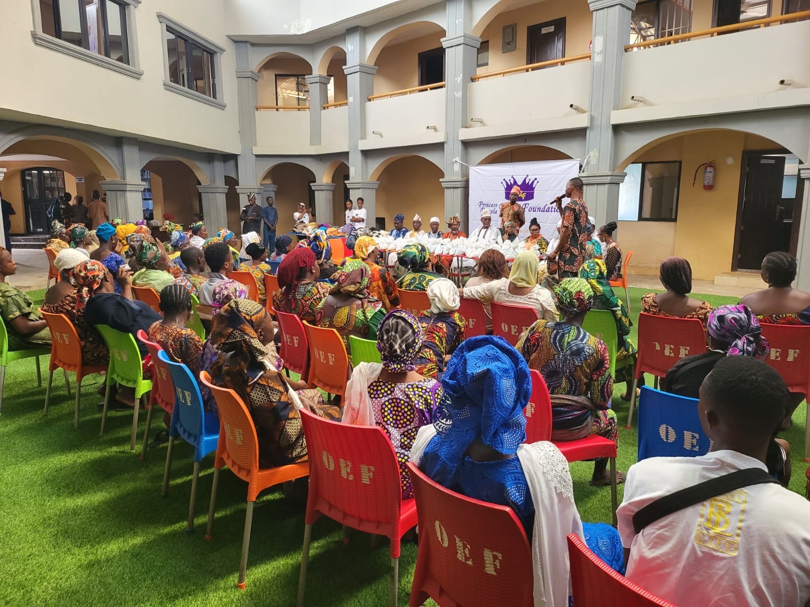 COVID-19 Relief Efforts: During the COVID-19 pandemic, the foundation established local distribution systems in Nigeria to deliver essential supplies, including food, clothing, and financial aid, to the most vulnerable populations. Pictures show distribution of food and clothing made in Abeokuta, Nigeria at the Palace of the Owu King, the Olowu of Owu, Oba Prof Saka Adelola Matemilola